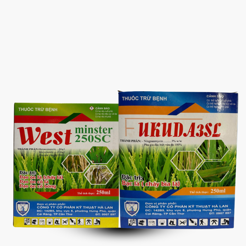 THÀNH PHẦN – Hexaconazole: 30g/l – Tricyclazole: 220g/l – Ningnanmycin: 3% w/w – Phụ gia vừa đủ 100% CÔNG DỤNG – Đạo ôn lá (cháy lá), đạo ôn cổ lá, đạo ôn cổ bông. – Đặc trị: bạc lá (cháy bìa lá).